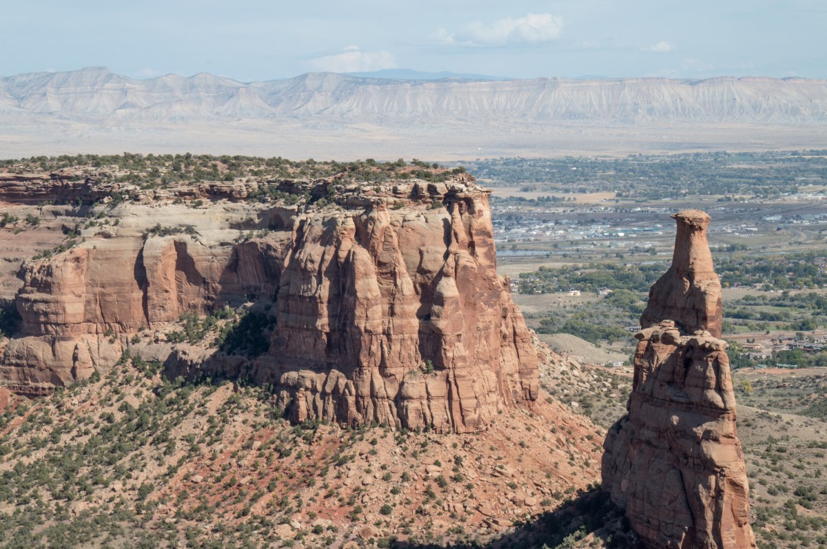 2016-oct-colorado-national-monument_10-09-16_6004 Posted on October 14, 2016 by Rich & Susan Trackbacks are closed, but you can post a comment. The stone formation to the right is the Colorado National Monument. They place a hug US Flag on top every July 4th.