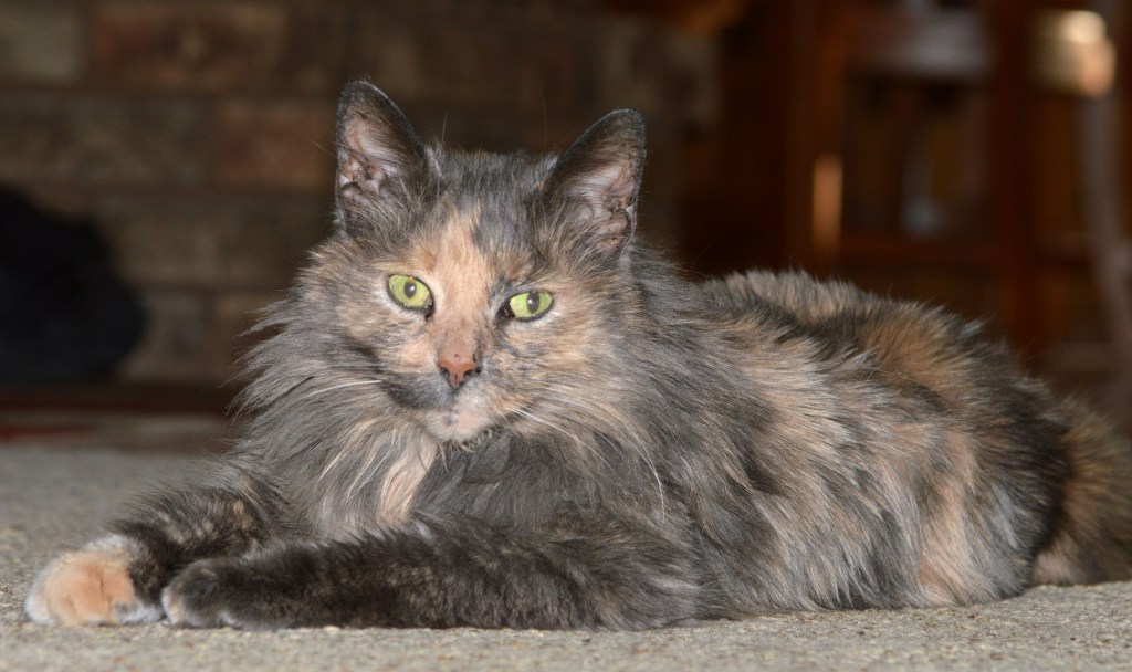 It was a rare sunny February afternoon when I happen to glance out a frosty window and there she was, huddled against our sliding glass door trying to gather what little heat she could. Some how she had survived. Susan put a little tuna fish in a bowl and set it close to her which she immediately devoured. “Don’t let that cat in the house” I protested! “That cat is ferrel and will never be friendly.” It was at that point Susan extended her hand through the slightly opened door and made a friend for life. I was so wrong.