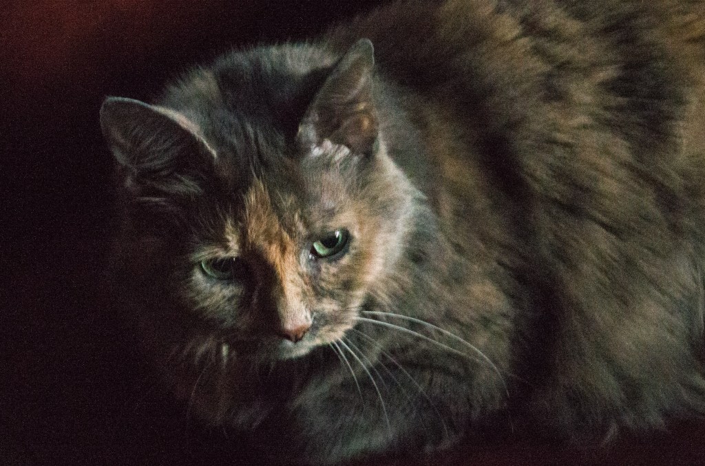 Her fur was matted and dirty, her ears bitten by frost, her body a mere six pounds, eight pounds under normal for a cat her size. She had no collar or tags but had been spayed. It was clear she had been abandoned by an uncaring individual or had gotten lost. As far as the cat was concerned, she was home. We named her ” Snickers”.